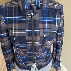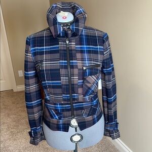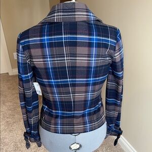 Le Chateau Blue and Brown Blazer with Plaid Pattern Tartan Biker Rocker