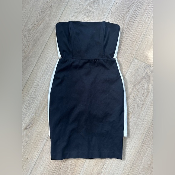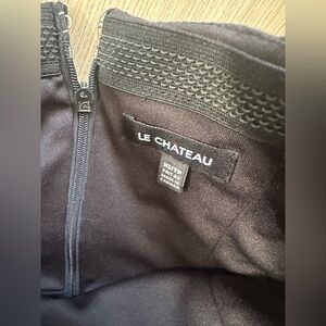This elegant sheath dress by Le Chateau features a striking blue hue with white trim, perfect for cocktail occasions. The strapless design highlights the shoulders, while the fitted silhouette and structured fabric ensure a flattering fit. Its above-the-knee length adds a touch of sophistication to any semi-formal event.