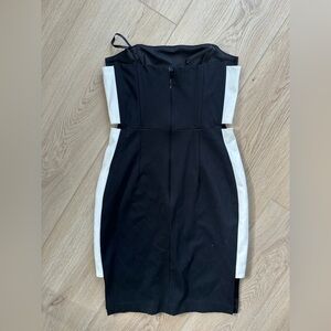 Le Chateau Blue and White Strapless Sheath Cocktail Dress