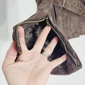 Le Chateau Brown 100% Suede Pockets Full Zip Snap Waist Belted Jacket Size XS