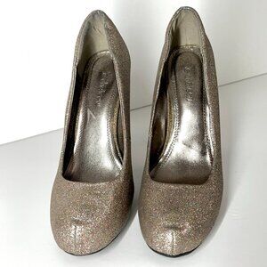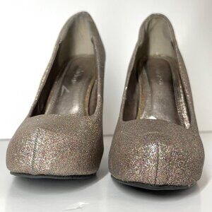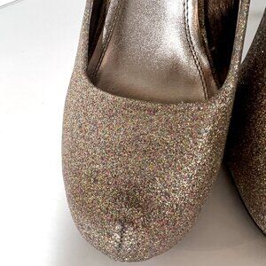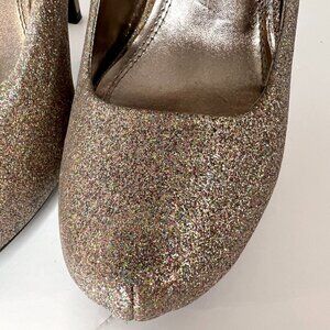 Le Chateau Champagne Gold Multicolor Glitter Platform Rounded Toe 5" Heels Sz 8