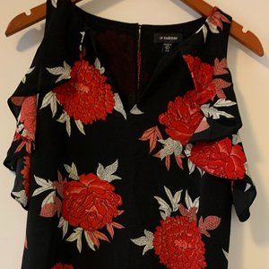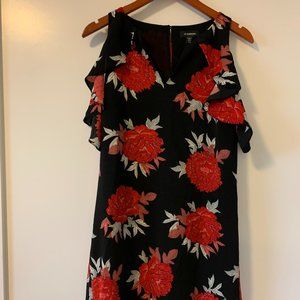 Le Chateau Cold Shoulder Floral Print Dress, V Neckline.
