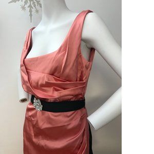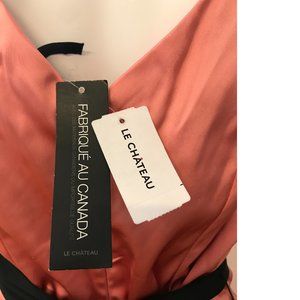 Le Chateau Corral Peach Salmon Bodycon Formal cocktail dress stretchy satin NWT