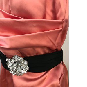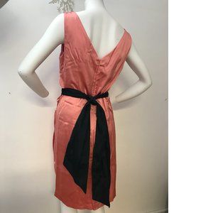 MADE IN CANADA, Hard to find old stock ORIGINAL LeChateau. PLUS SIZE NWT Stunning flattering corral pink/ orange bodycon scoop mock neck v-back dress with black jeweled pendant belt .