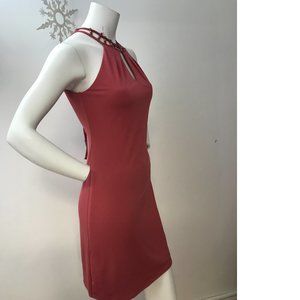 Hard to find, old stock ORIGINAL LeChateau. NWT. Stretchy dark corral/ salmon/ peach color. Flattering, halter neck bodycon dress. Fully lined for a sleek fit.