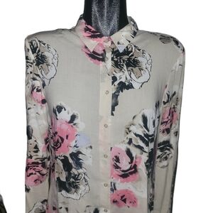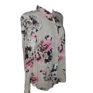 Le Chateau Cream Floral Print Long Sleeve Button Up Shirt M