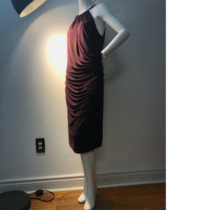 Le Chateau Dark Wine Red Gold Formal Cocktail Drape Halter Neck Bodycon …