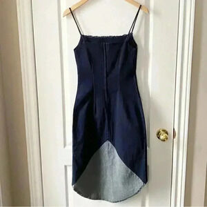 Le Chateau Denim Slip Dress Bodycon Stretch Blue High Low Size Small NWT