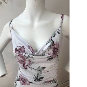 Le Chateau Drape PLUS SIZE formal floral white pink knit bodycon wedding dress