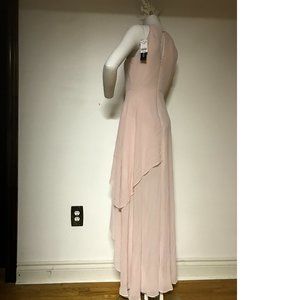 Le Chateau Dusty Rose Blush Pink Wedding Asymmetrical Gown Maxi Dress NWT