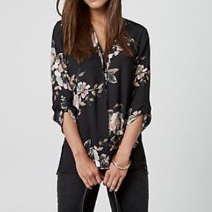 This smooth blouse is designed with a relaxed silhouette and pretty-meets-cool lace detailing.
