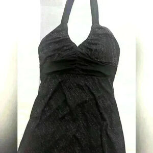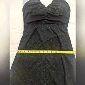 Le Chateau Formal Black Midi Sparkly Halter Dress - size Small