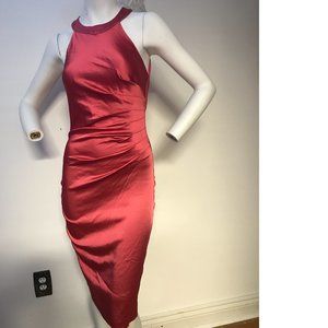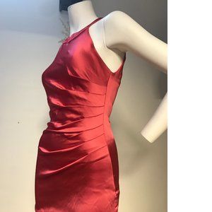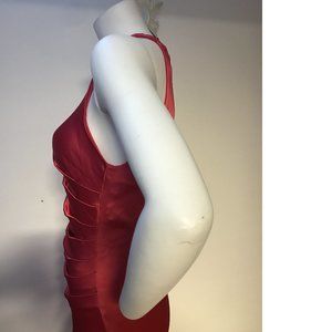 Le Chateau Formal Cocktail Shiny Corral Salmon Peach Pink Bodycon Holiday Dress