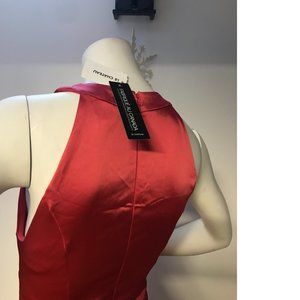 MADE IN CANADA ORIGINAL LeChateau hard to find old stock. Gorgeous and flattering. halter neck, side drape, shiny stretchy satin summer dress. Fully lined for a sleek fit. Deep rich corral color.