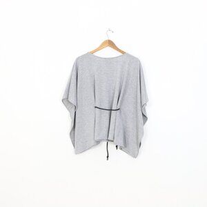 The soft grey hue and luxurious fabric blend make this poncho both comfortable and chic. The belted detail cinches at the waist, adding shape and a flattering silhouette to any ensemble. Whether you're heading out for a casual coffee date or looking to elevate your workwear, this poncho is a must-have wardrobe essential.