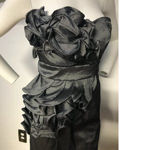 Le Chateau Gunmetal Grey Shiny Stretchy Flowy Ruffle bodycon dress Formal NWT