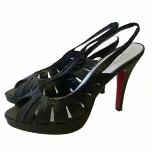 Le Chateau High Heel Slingback Sandals Black Satin Cut Out Peep Toe Size 7