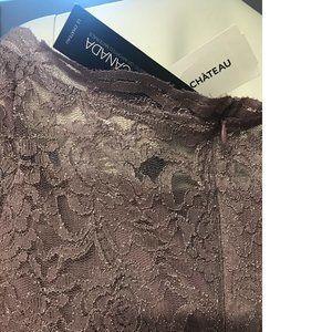MADE IN CANADA ORIGINAL LeChateau hard to find old stock. NWT. PLUS SIZE. Delicate, elegant & sophisticated bodycon, scoop neck, shiny sparkly metallic lace