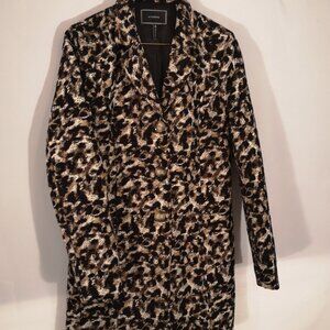 Le Chateau Ladies Size Medium Black Tan & White Made in Canada Animal Print Coat