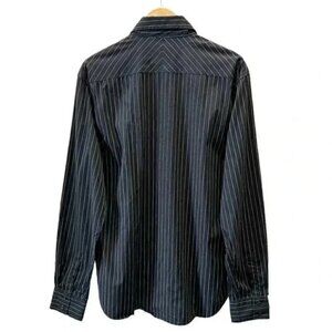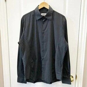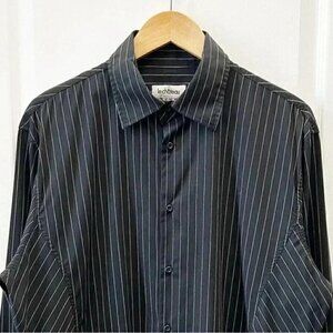Le Chateau Mens Button Down Dress Shirt Long Sleeves Black White Pinstripes XL