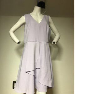 Fit and flare, beautiful delicate lilac / light purple / lavender color, flattering v- neck, asymmetrical skirt ruffle. Fully lined for a sleek fit.