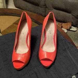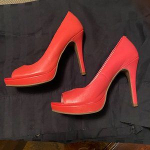 Beautiful coral color. Brand new, never worn. I purchased them for a wedding, I ended up wearing an alternate dress. These shoes are comfortable enough for the office as well as perfect for weddings, cruises, and the upcoming spring and hot summer nights.