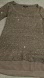Beautiful knit top by Le Chateau with sequin accents to give a subtle sparkle. Features a sheer material along the hem to give the illusion of a layered look. In between olive and brown. 3/4 length sleeves. Size small.