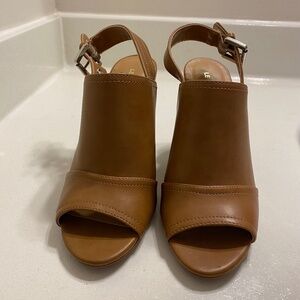 Le Chateau shoes, buckle strap, woodgrain heels. Never worn Heel height is 3.75 inches.