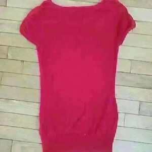 Le Chateau bamboo blend short sleeve sweater with swoop neck. 61% lyocell, 32% Rayon from bamboo, 7% silk. Worn once