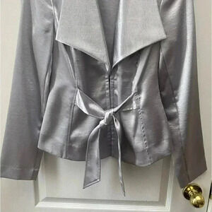 Le Chateau Silver Metallic Satin Blazer Sash Belt Size Small