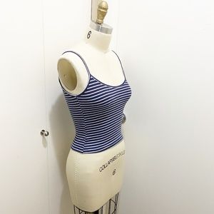 Le Chateau Striped Spaghetti Strap Tank Top Blue White XS
