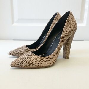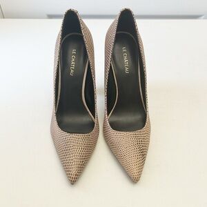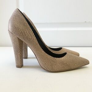 Le Chateau Tan Leather Snakeprint Embossed High Block Heels Size 7.5 NEW