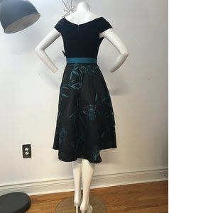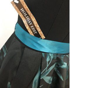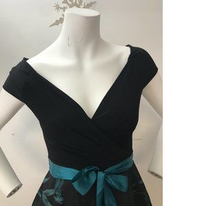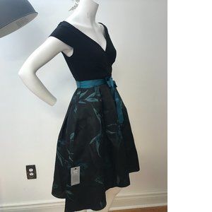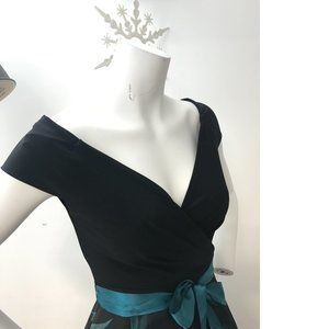 Le Chateau Teal Blue Emerald Green Black Fit Flare Asymmetrical Formal Dress NWT