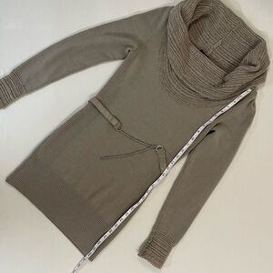 Le Chateau Tunic Sweater, Long Sleeve, Cowl Neck, Beige, Size Small W Belt