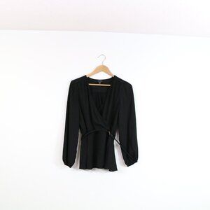 *Le Chateau V Neck Long Sleeve Black Belted Blouse