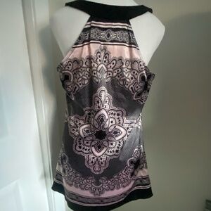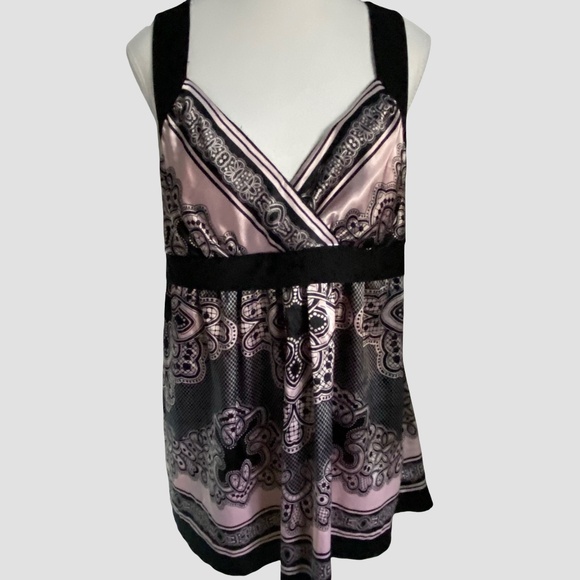 Le Chateau Vintage Black Pink Babydoll Satin Feminine Party Top- Sz-L