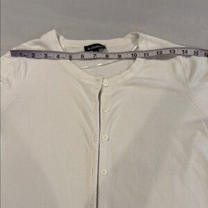 Elegant white cardigan. Button-up front. Three-quarter sleeves. Perfect for layering. Has strentch.