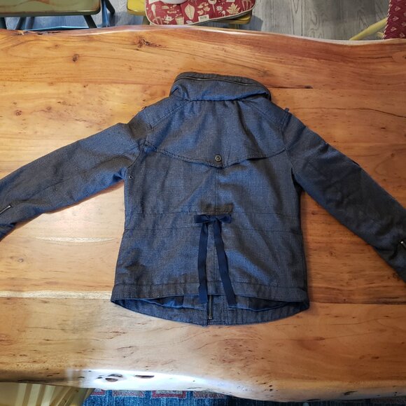 There is a tie in the back for a more fitted look. Also includes a zipped up hood!
