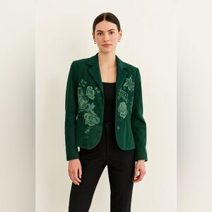 Le Chateau Women's Green Suede Floral Embroidered Fully Lined Statement Outerwear Blazer Jacket XS