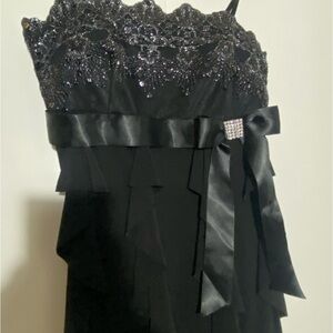 Le Chateau black elegant strapless sequins coquette mini cocktail party dress 6