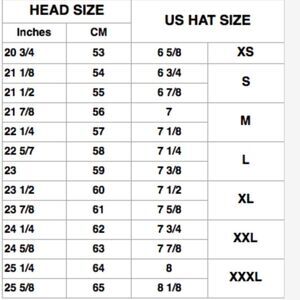 22.5"/ 58.5 cm around band on OUTSIDE of hat
