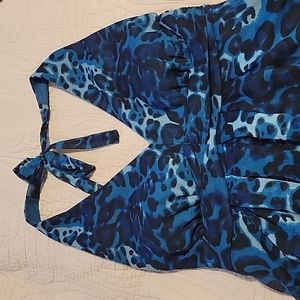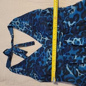 Le Chateau blue leopard print halter dress, lined, flowy and pretty. Medium