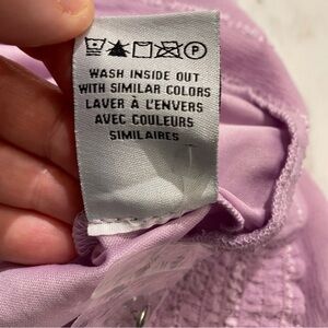 Le Chateau chiffon blouse smocked waist puff sleeve lined soft lilac textured LG