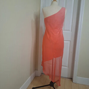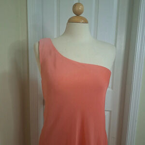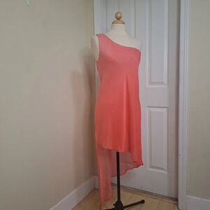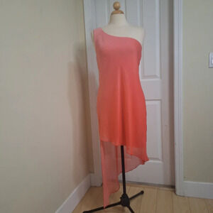Le Chateau dead stock one shoulder coral ombre dress train with playful train