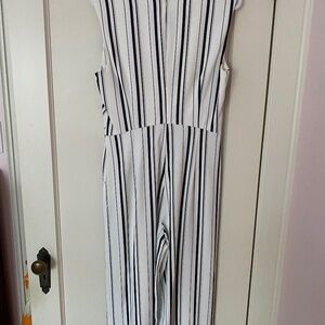 Le Chateau dressy jumpsuit, size M in white with blue stripes