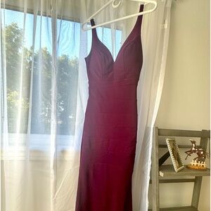 XXS stretchy long prom/wedding/new year’s eve dress! Gorgeous burgundy with bandage type effect on torso. Worn once! EUC