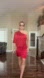 Le Chateau red one shoulder draped ruched web sleeve mini cocktail dress M