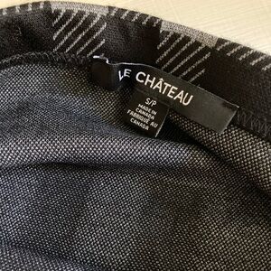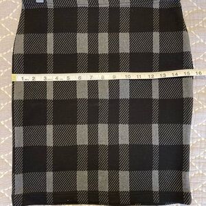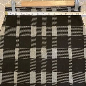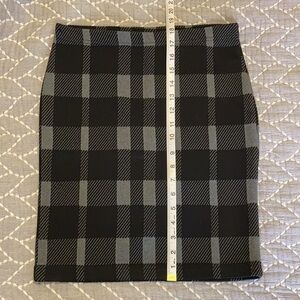Cute and stretchy le chateau, high waisted pencil skirt! On trend black and grey plaid pattern.