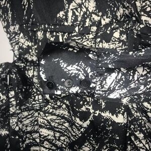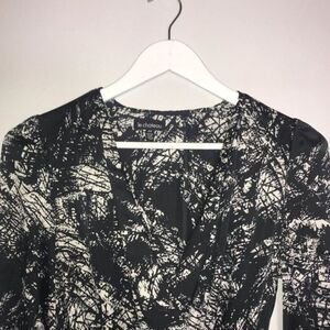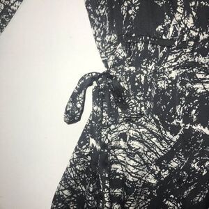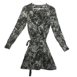 Le chateau black & white long sleeve wrap dress in a splatter pattern with an elastic cinched waistline.