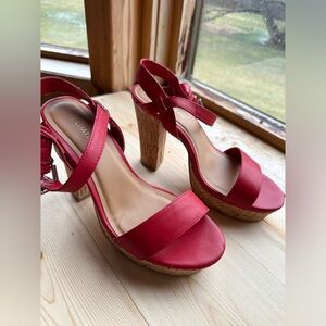 Le Chateu | Red Cork Platform Heels Sandals
